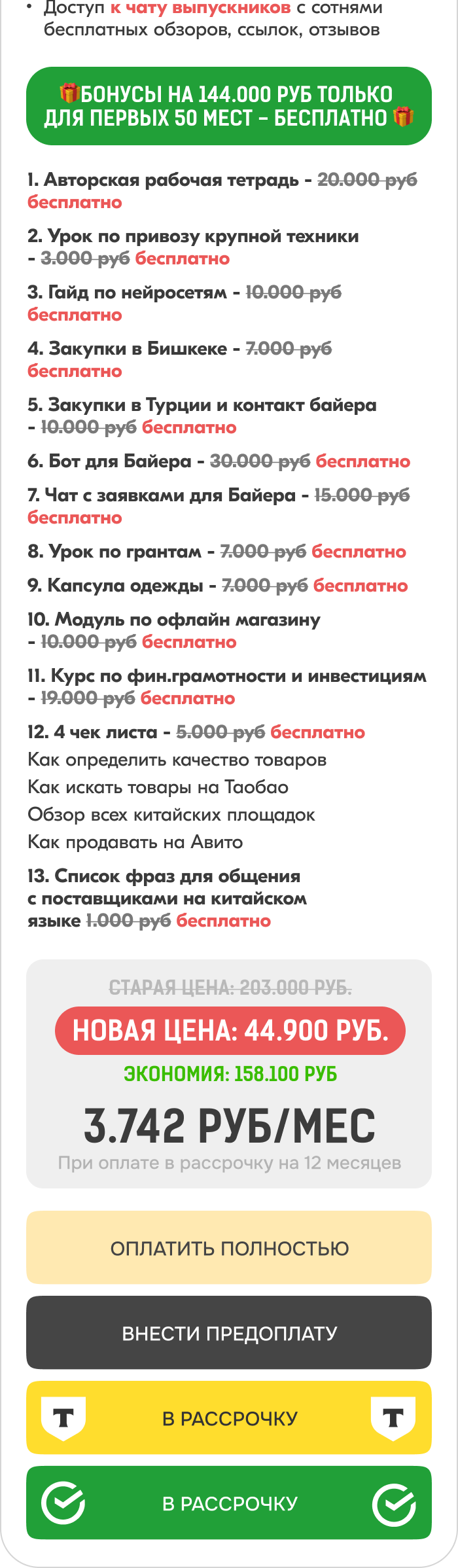 * первые 10 человек, которые оплатили курс полностью или оформили рассрочку