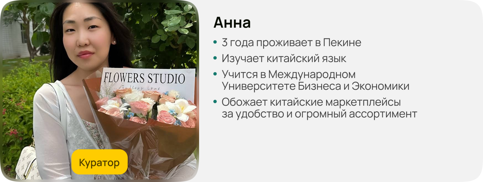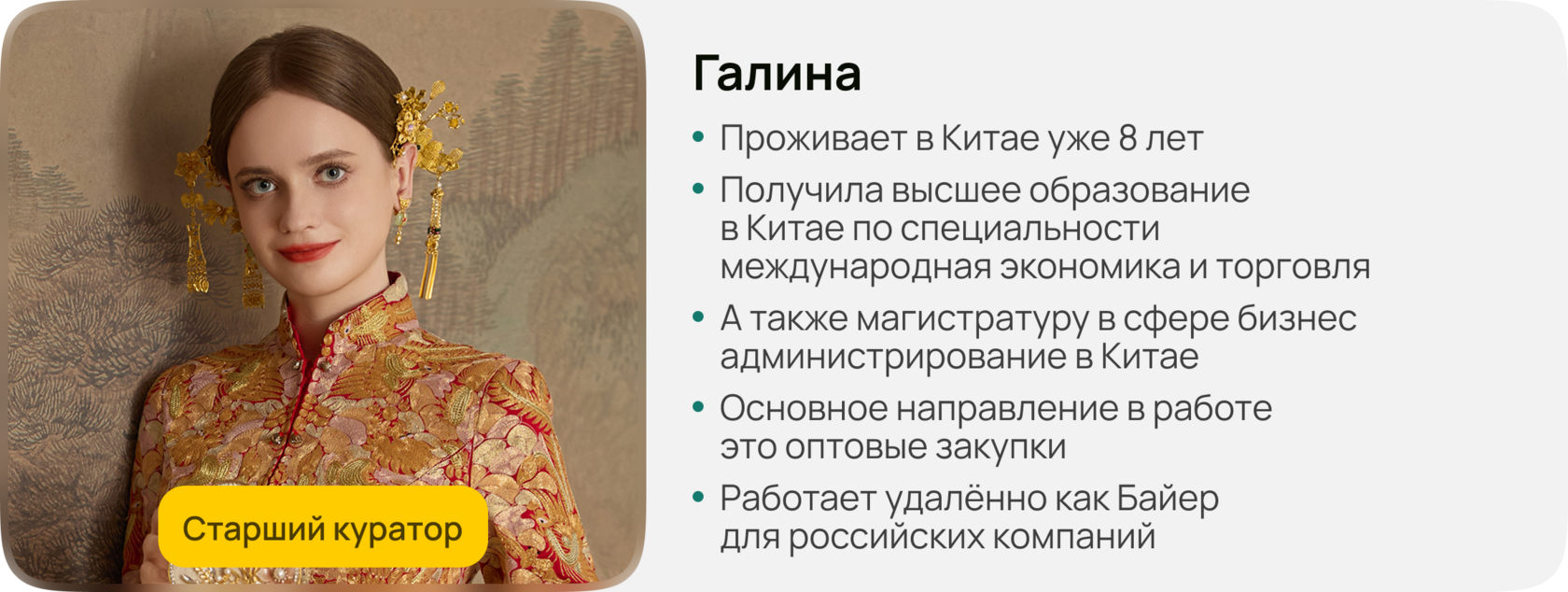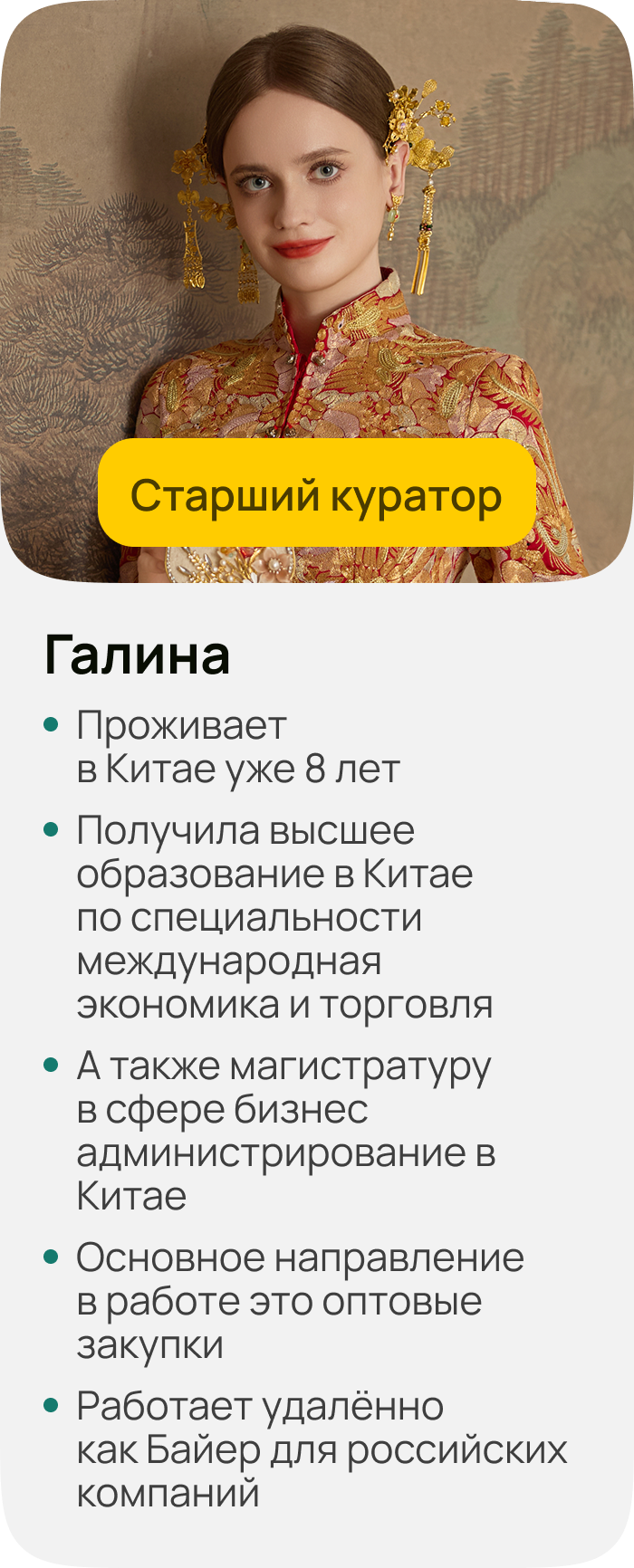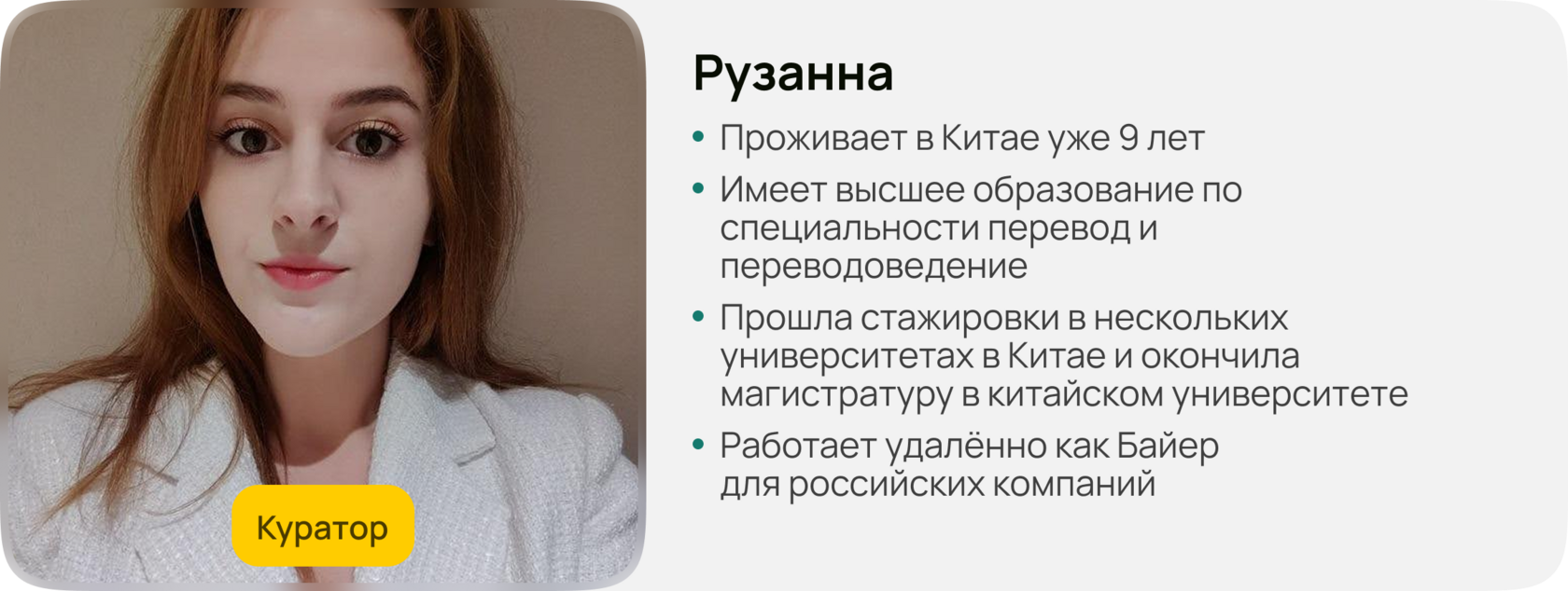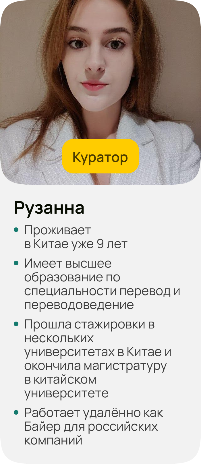 Кураторская поддержка от наставников со знанием китайского языка и опытом работы с Китаем